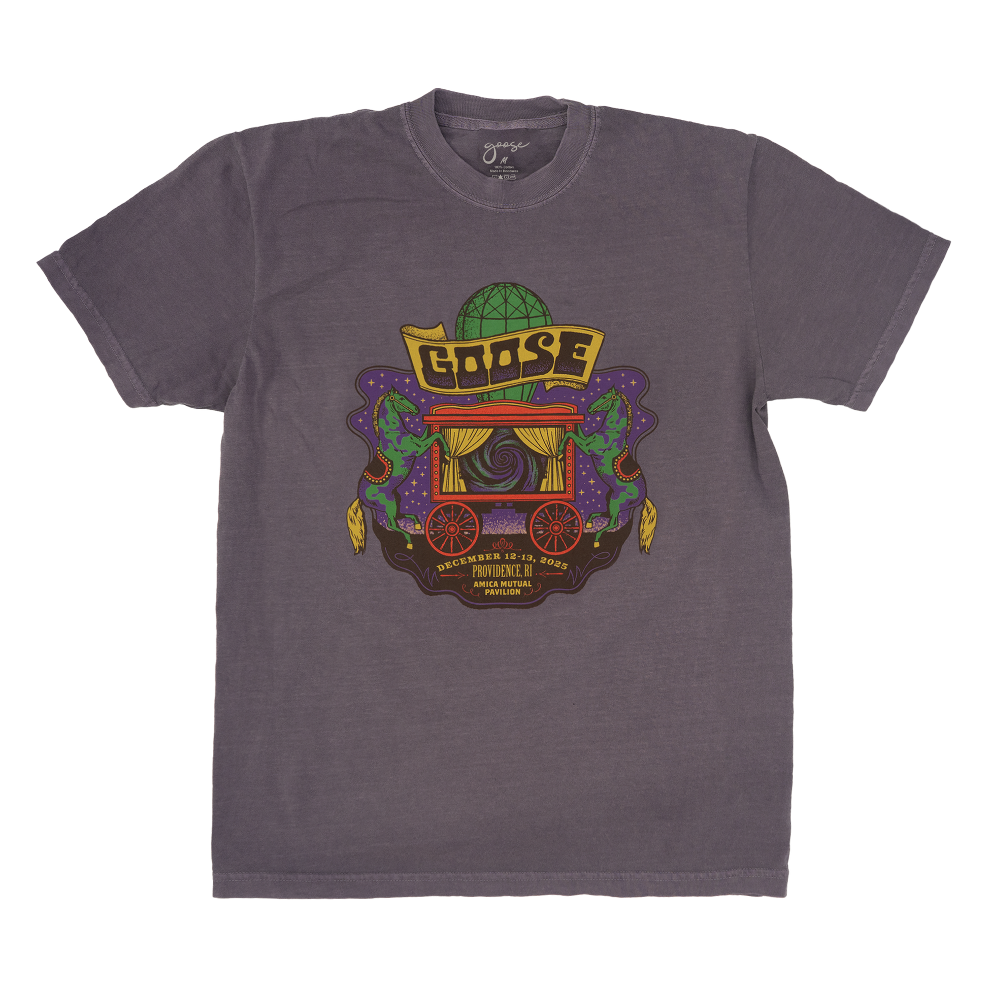 "Wagon" design by Justin Helton screenprinted on a Wine-colored, 100 percent garment-dyed cotton tee.